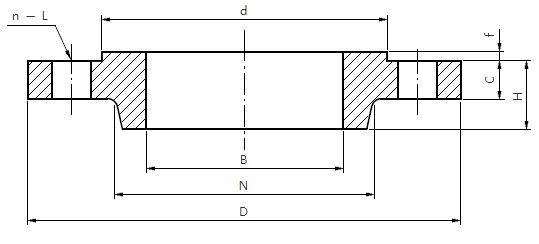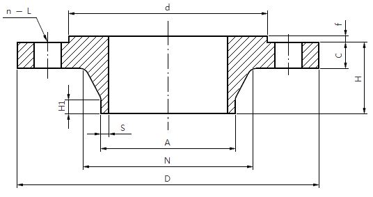 3、突面(RF)板式平焊法兰以突台为界分上下2部分计算